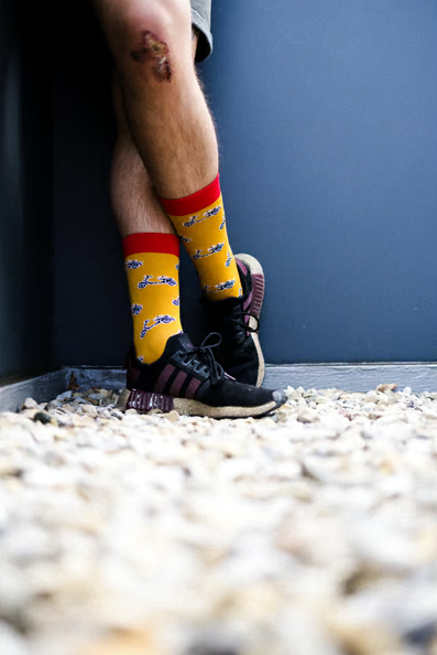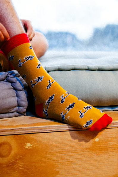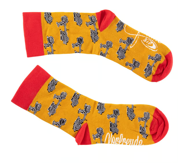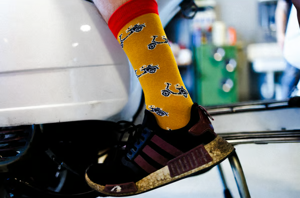 Kickstart la tua vita! I calzini sono le nuove cravatte! Se vuoi essere aggiornato, aggiorna i tuoi outfit con le nostre colorate calze Vespa. Se vuoi essere in prima linea, puoi arrotolare le gambe dei tuoi pantaloni in modo che le calze Vespa siano perfettamente allestite.
